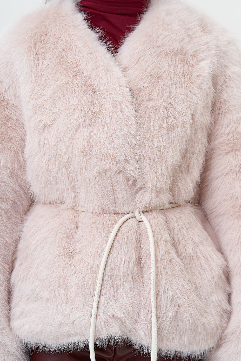 Фасон - прямой Длина изделия - 60 см Цвет - розовый (персиковый) Материал - экомех Состав полотна - полиэстер 100% Подкладка - полиэстер 100% Вид застежки -крючки, пояс Вид ворота - V-образный Фасон рукава - спущенное плечо, длинный |